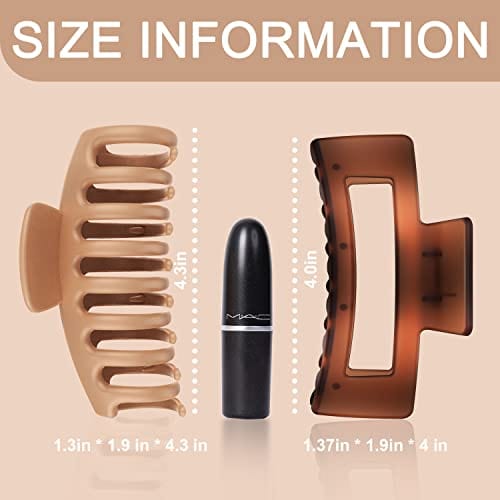 Details: Dyrec 8 Pakc Large Hair Claw Clips for Women Square clips: 4" * 1.37" *1.9" Round Clips: 4.3" * 1.3" *1.9" Clors: Cream, Beige, Tortoise, Black