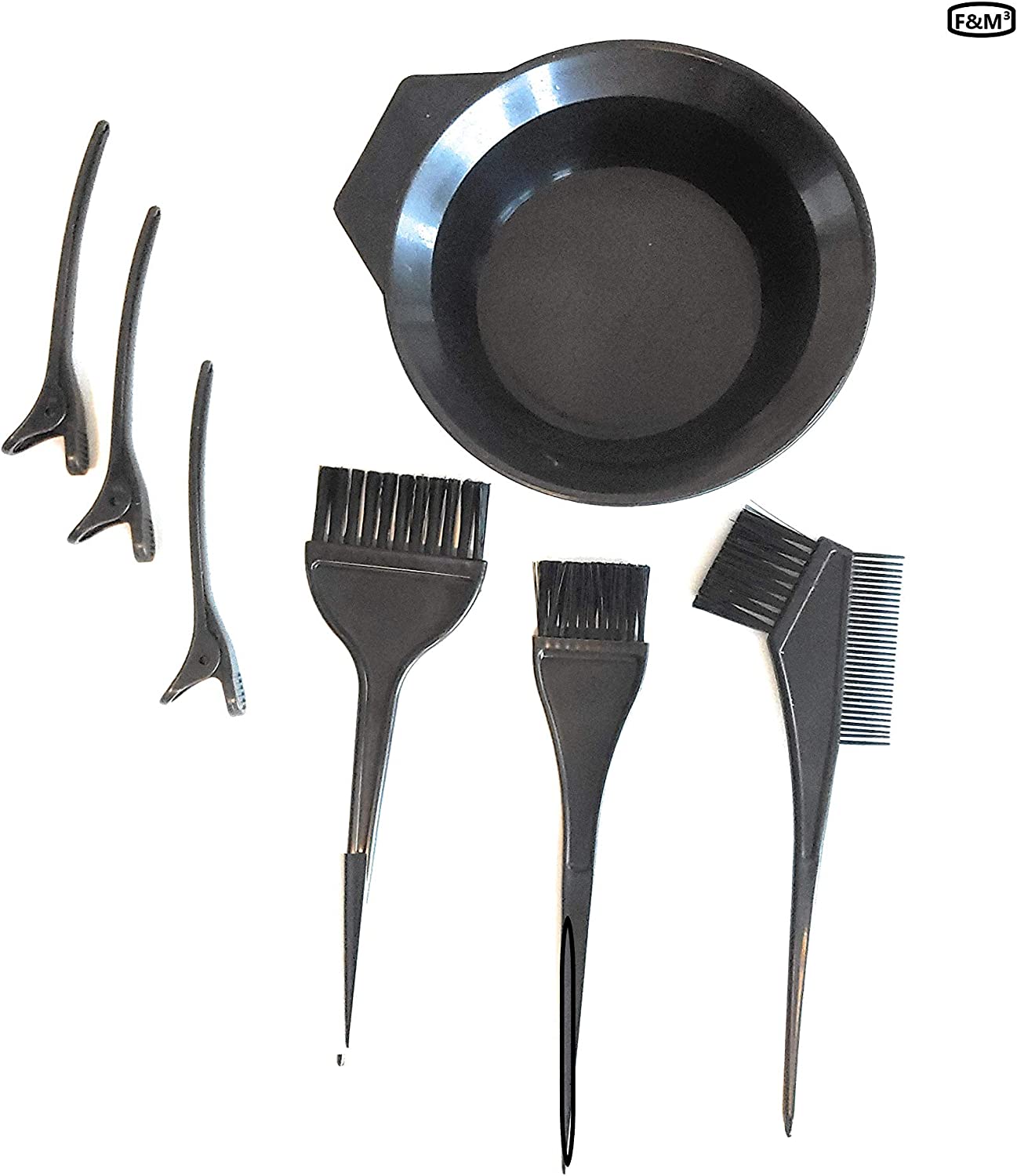 - UNIQUE DESIGN: F&M³ Includes 3 Coloring brushes 3 Hair section clips a Bowl that your dye set